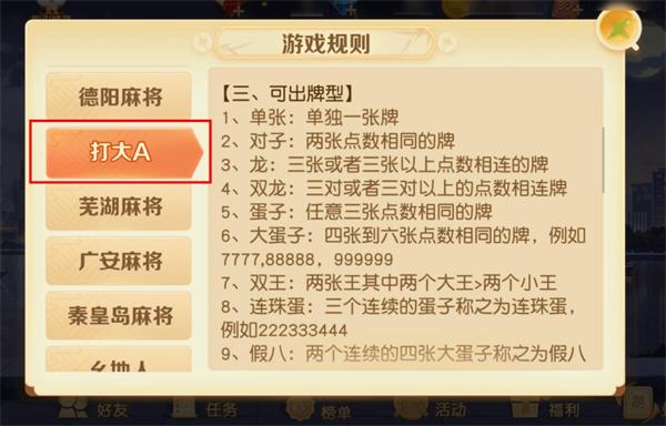 与传统斗地主相比,打大A玩法中还有许多有趣的牌型,让我们一起戳下图看看吧!