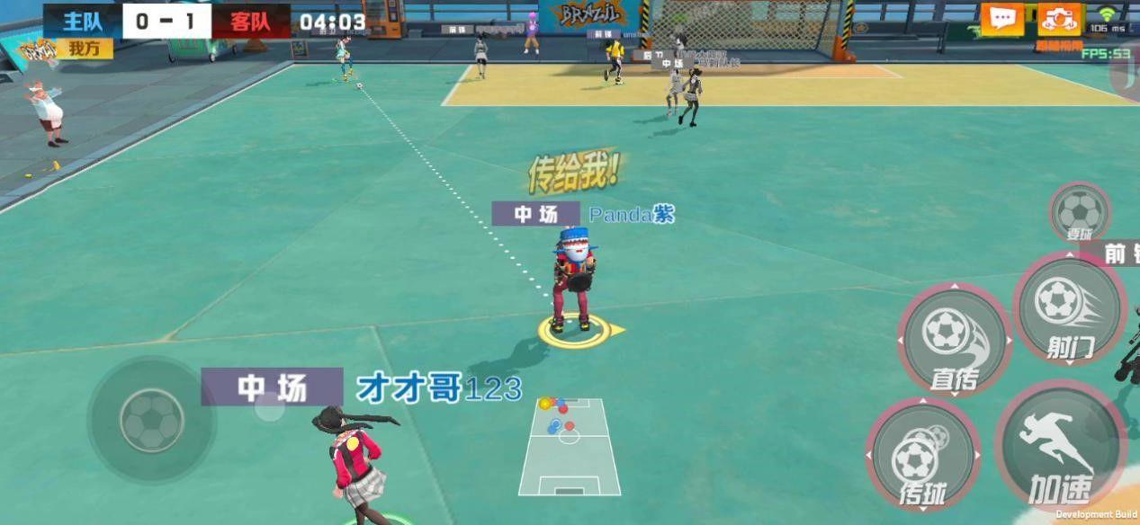 热火朝天的4V4街头足球比赛,竞争极其激烈。不管是抢球、铲球、传球都极度考验操作能力、球员素质及队员之间的默契。试想你在后场断球时,如果队友在前场获得了一个好位置,不要犹豫,一个长传冲吊赶紧给你的队友传球吧!而当你带球从边路进攻时,如果有队友已经处于一个好的位置了,来个边路传中吧!如果你不擅长带球突破进攻,也没有关系来一个中场爆射!队友带球受阻时,你可以选择火速前去支援为队友保驾护航,也可以找到对方的防守漏洞,去绝佳的射门位置,向队员大声要球!