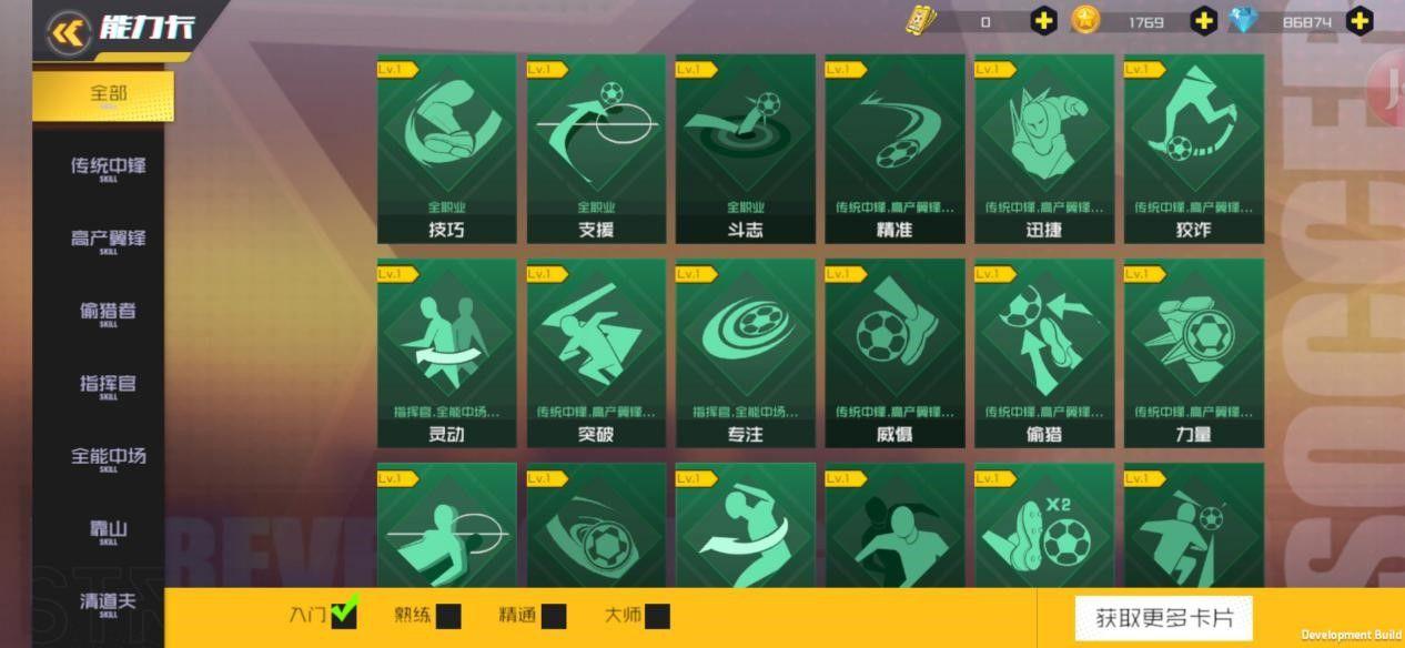 新版本还增加了许多球员养成系统来对应球员各个方面属性的提升,包括升级系统、天赋系统、特训系统、导师系统等。并且,根据不同球员的能力需求安排了能力卡,有的能让球员提升属性,有的可以增加独特的球场动作效果!