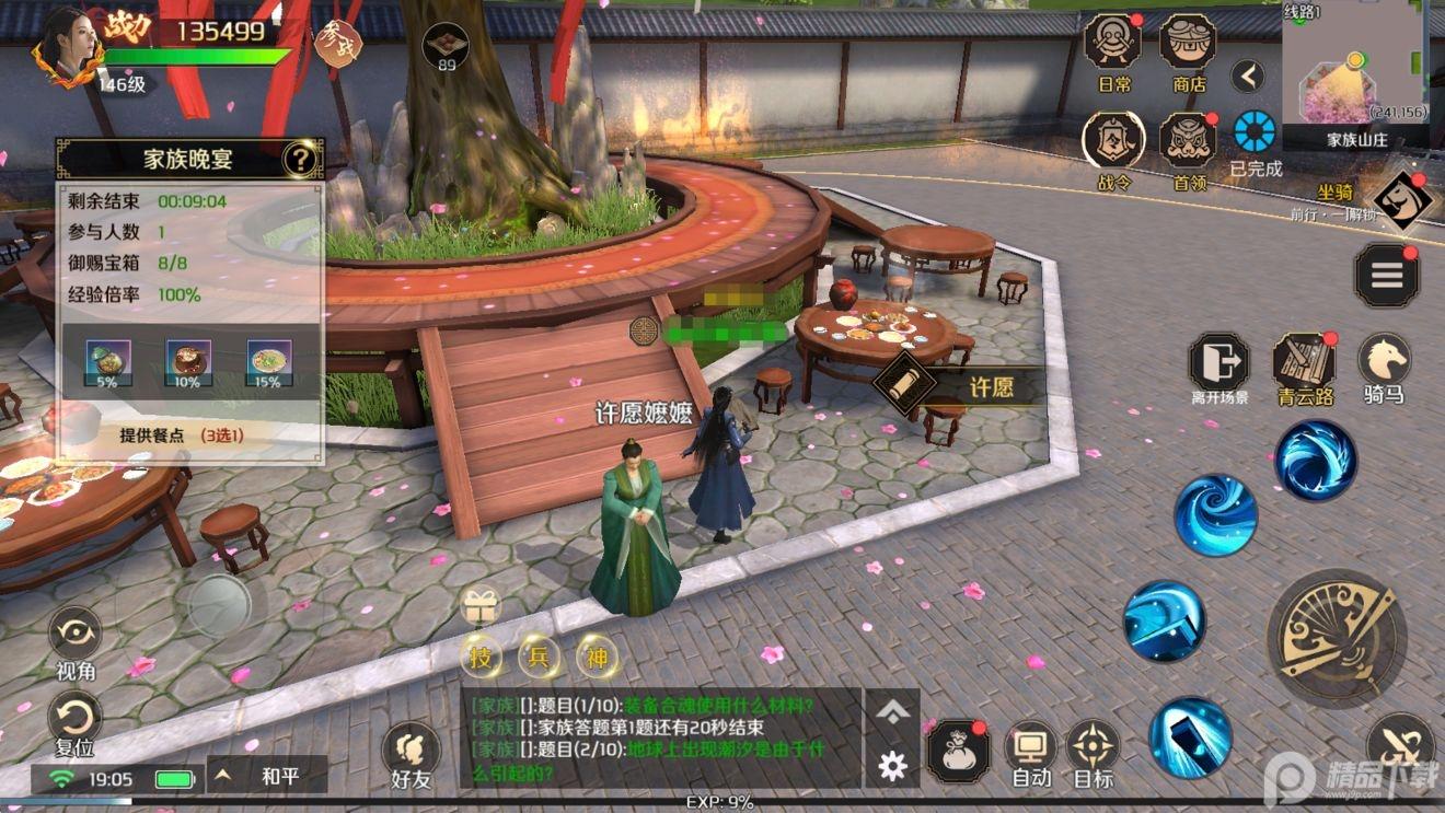 除了上述途径之外,于19:00-19:15期间将举行家族晚宴,在家族晚宴期间,晚宴光圈范围内的玩家每隔一段时间可获得经验和家族贡献,家族晚宴期间,家族的成员可以一起参加答题,参与答题并且第一个答出正确答案的成员可获得双倍经验和家族经验,购买食材可以增加家族晚宴期间获得的经验,最高可获得200%的经验加成。
