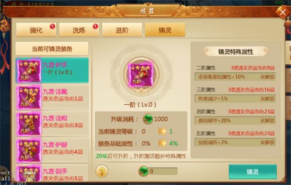 3、铸灵可提升装备属性,到达一定阶数还可激活装备的特殊属性(灵值可通过挑战副本-命运岛屿获得)