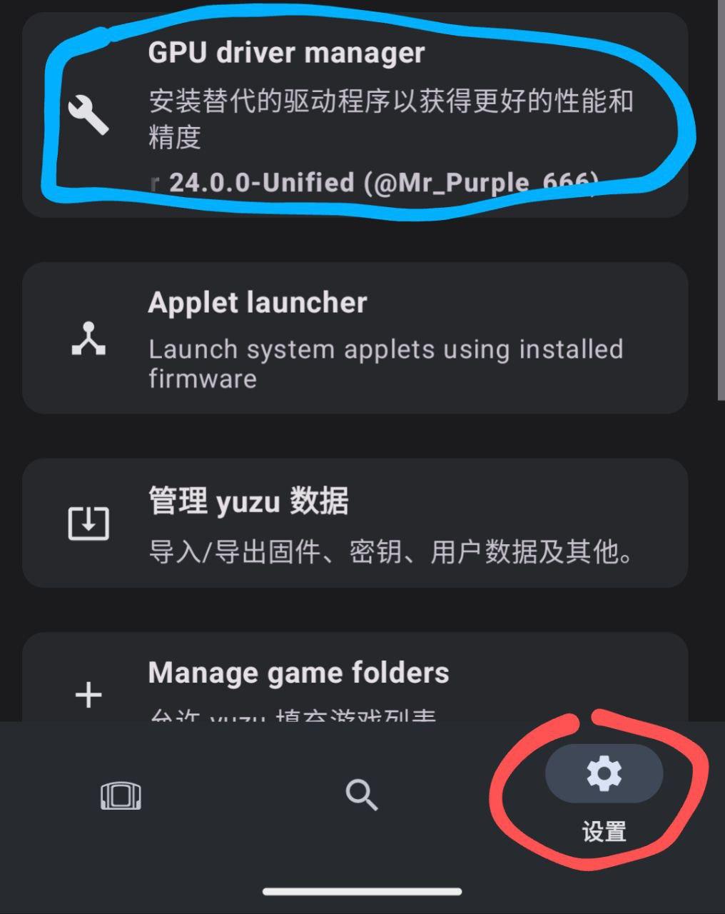 1.在yuzu首页打开右下角的设置