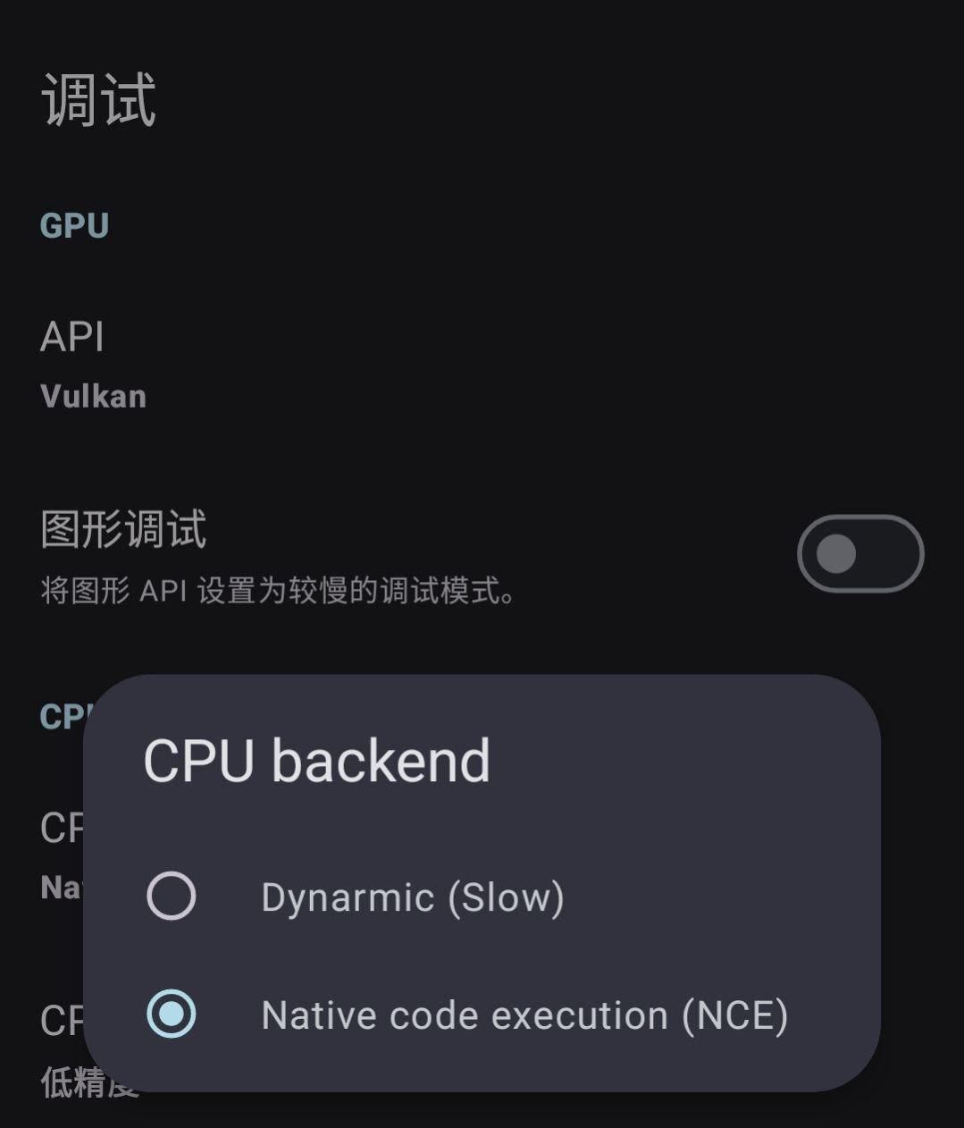 2.打开高级选项>调试>CPU backend 选择(NCE)即可获得最佳的运行效率。