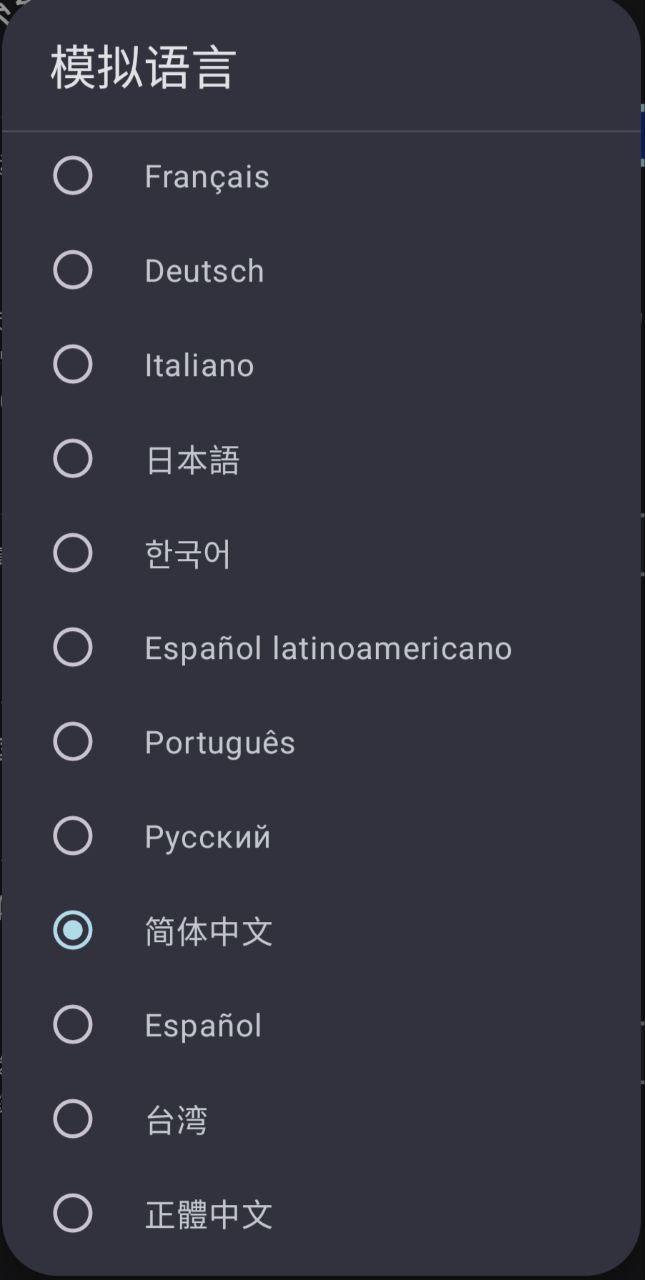 3.打开模拟语言选择中文即可