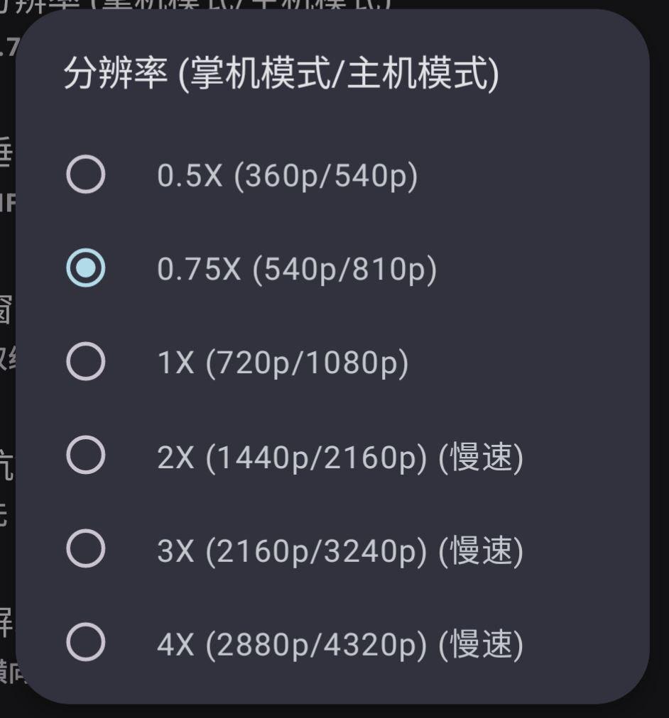 1.打开高级选项>图像>分辨率(掌机模式/主机模式)选择0.75X或更低即可获得较好的运行效率。