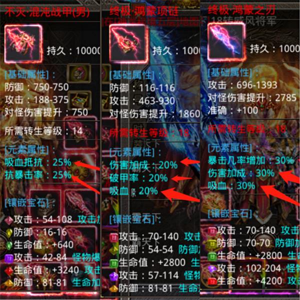 装备的话中期就要着重搞攻击破甲了,刀的话推荐大家合攻爆的武器,如果有实力的话最好是合终极刀,各方面都可以兼顾到,项链的话有条件就合伤害加破甲的双属性,运气好的话终极项链也可以,其他的装备主要以抗暴击,伤害反弹以及破甲率为主,为什么要这样做呢,大家可以想一下,因为前期的话咱们都属于是在发育阶段,所有没有人愿意去打假,但是中后期就不同了,大家的装备都是该差不差的,总会有些玩家喜欢打假,尤其是在大家挂机的时候清人。