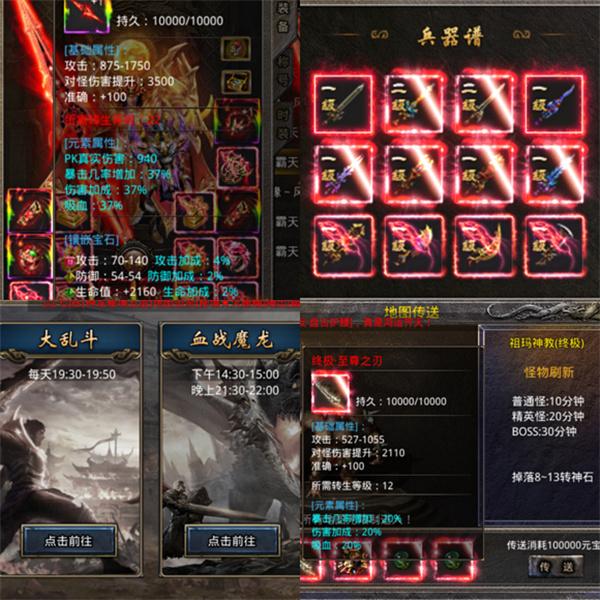 11、战士、法师、道士三职业延续情怀,我们承诺高爆率、高回收、全天活动不间断,给你变态杀戮般的畅快体验!