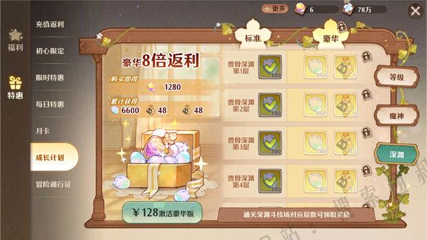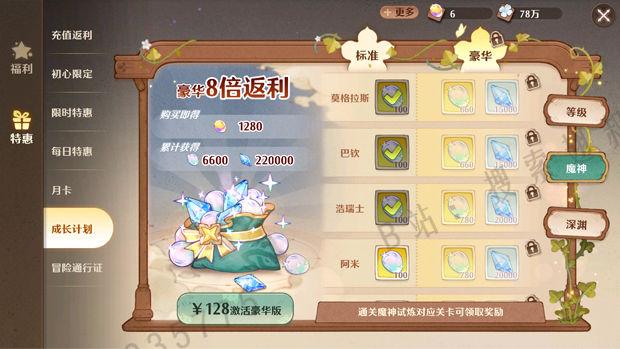 以上3个成长计划,如果你氪金1500以上的,可以在氪完初心限定礼包后选择这3个成长计划,彩铂、光铂、鱼冻、玛那、幻影之尘都是刚需的提升战力的材料(光铂可以把每日的强化卷轴氪了,其余留下来给爬塔层级礼包)
