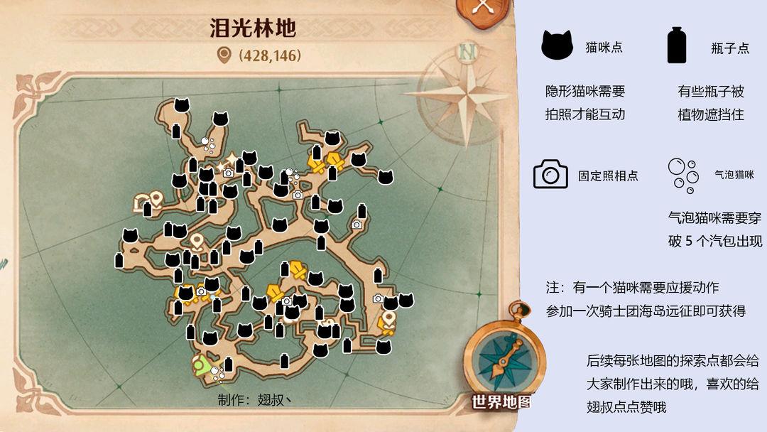 相信很多新玩家对于地图探索找猫猫会很懵逼,翅叔给大家把标识都做出来,如果时间多的玩家 还是建议大家自己探索,因为还是很不错的一个乐趣所在,如果是上班族可以看地图标识更短的时间完成探索。