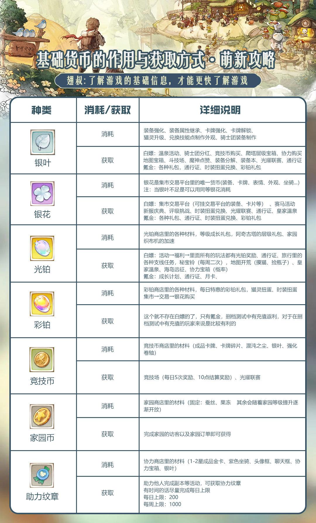 各类基础货币的消耗与获取方式,方便大家在第一时间了解到各类货币的作用,有更好的游戏体验,给大家做了一张详细的表格图片,方便大家观看