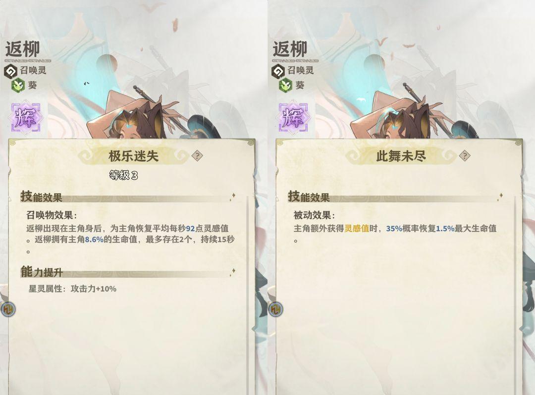 为了能快速使用技能,所以我们需要用上一个加灵感的卡。返柳就有不错的回灵效果搭配符节整全二分!!