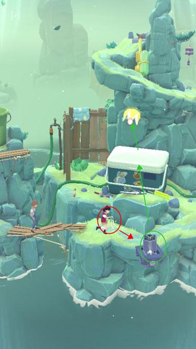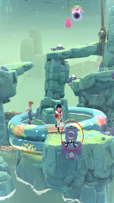 12、等【灯座】吸收到亮点时,再返回操控【沙漏】让【灯座】落地,A拿到【提灯】继续往前走。