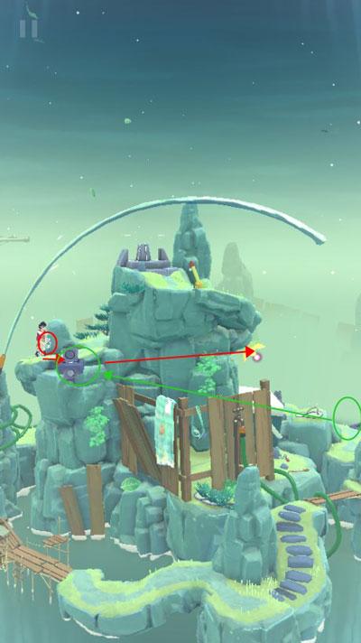 2、游戏中拥有不同的个岛,每个岛都有环形山路,游戏人物最终的目的地是山顶。玩家所能做的就是通过滑动屏幕左右时间的正常流逝和回溯,在这个过程中寻找特殊的时间点解锁机关。