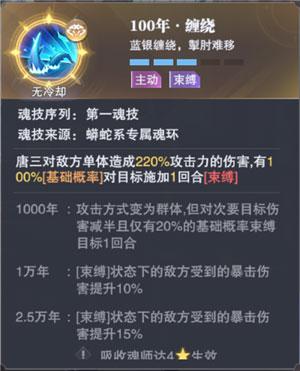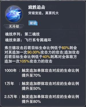 技能是单体攻击,但是会根据目标的血量,触发被动效果,进行单体或者群体追击,后续会根据魂环的年份提升,降低触发的条件。