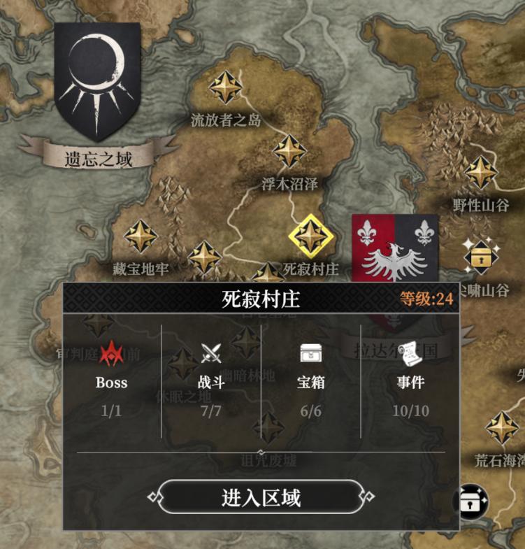 忽略隐藏地图:章节100%进度需解锁隐藏关卡(如第一章死寂村庄),需通过商人获取地图开启。