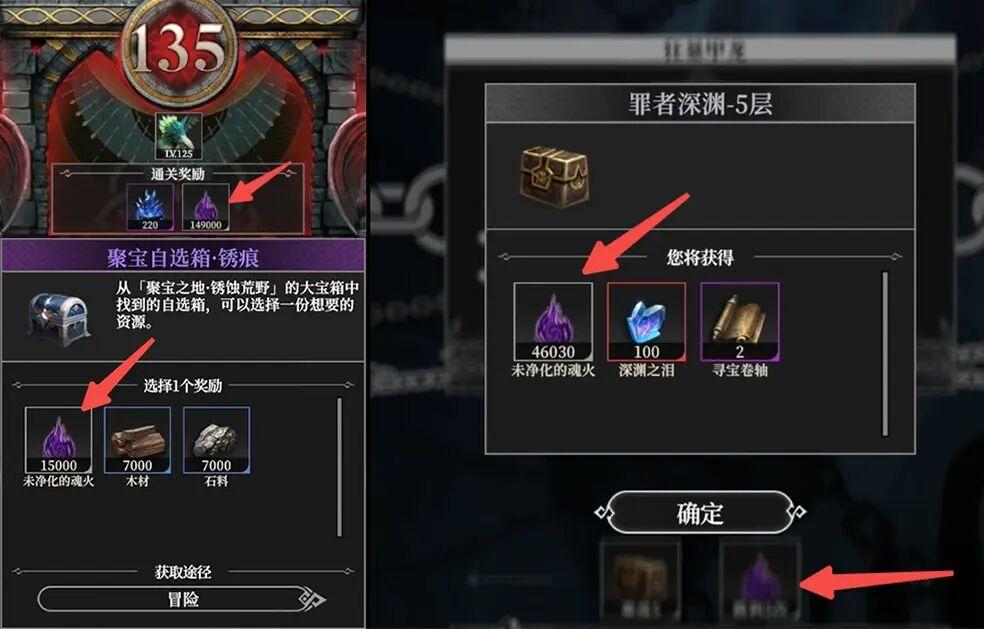 必做:解锁墓穴挑战(爬塔)后优先升级汲魂器,加速魂火净化效率,凝魂石等升级材料主要来源于此。