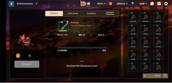 1. 等级强化,需使用武器经验槌子,每一次强化都必须用掉一个,消耗的非常快,也有转数的强化成就。