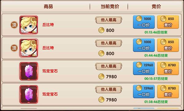《彩虹物语》的拍卖行系统所有装备、道具的定价都由系统制定,固定出价,玩家可自由选择进行竞拍还是一口价购买。