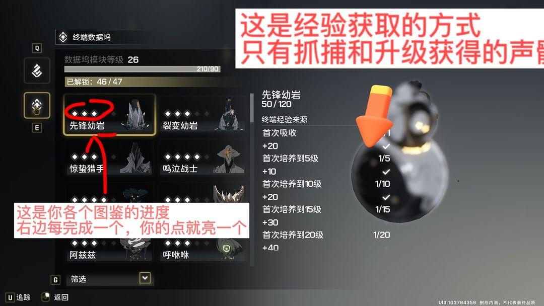目前升等级的方式有抓没有抓过的声骸的和强化声骸,这时候我们就要打开我们的终端数据坞,他会提示你有什么声骸未获取,什么声骸未升级
