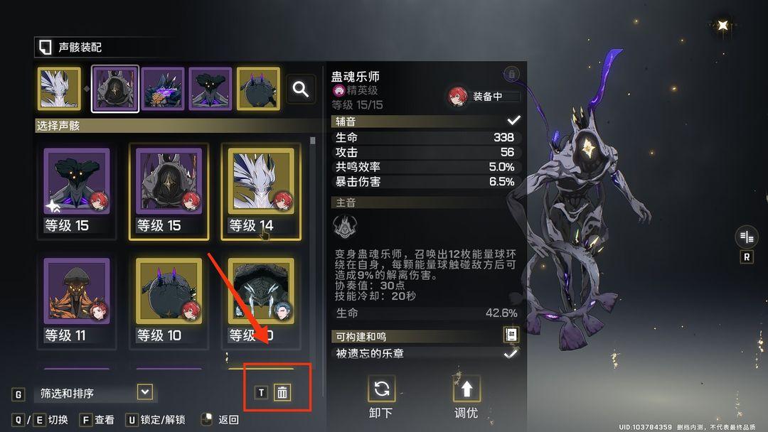 回退的地方我们需要点开角色面板找到声骸装配,它下面有个垃圾桶,就可以回退了