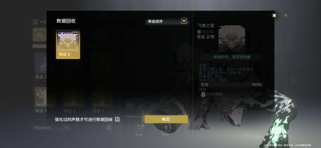 再次强调,只有强化后的声骸可以回收,回收只回收80%经验!而且这张卡会直接消失,已装备的声骸是不能回收的,需要拆下来。回收找不到的话去看看是不是有人穿上了。这一套黑暗炼金下来够你拉到26级了(21级开始掉金)就是最开始我那个图片那个概率
