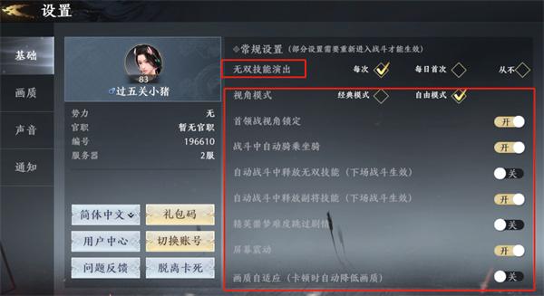 ① 进入游戏后,点击左上角头像按钮,进入【设置】界面后调整特效、帧数等选项;