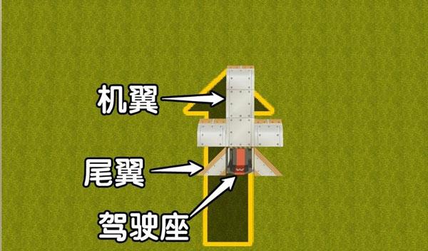 3、然后我们拿出机翼,制作一个飞机的头部,冒险家们可以照着截图制作: