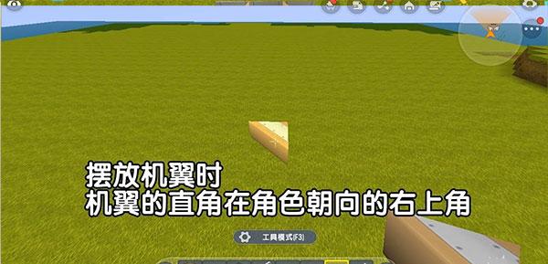 7、尾翼的摆放方式需要小伙伴们注意,在摆放机翼时小伙伴们要注意角色的朝向,机翼的直角部分是角色朝向的右上角: