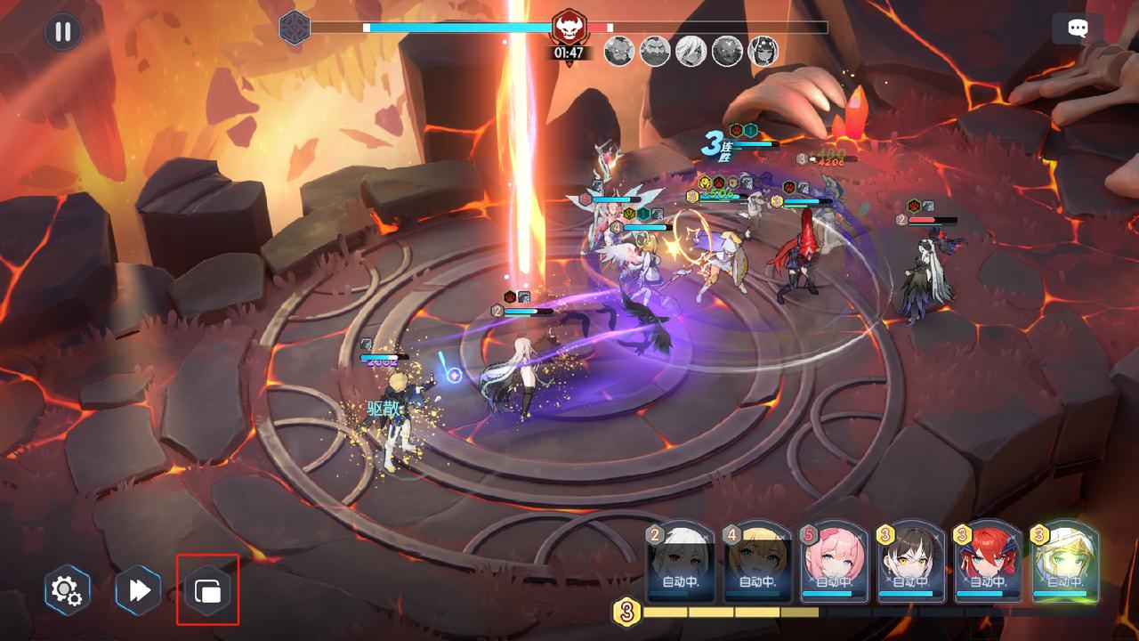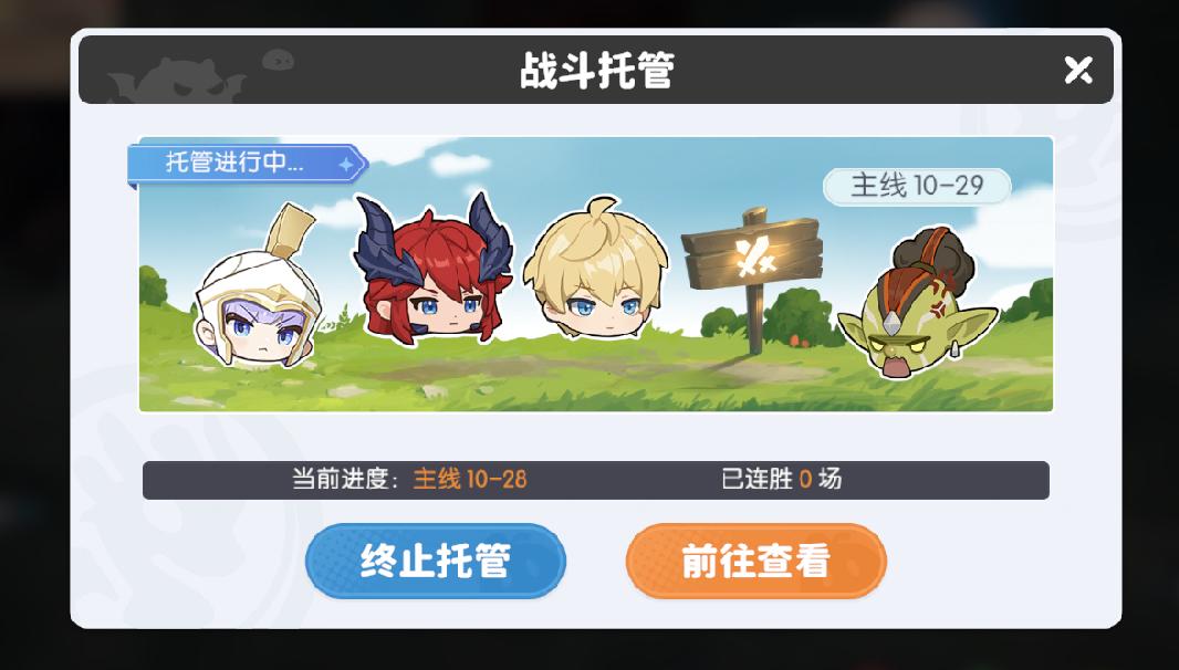 点击左下角托管键,返回主界面并行操作其他内容(如龙骨遗城、奇境攻防);