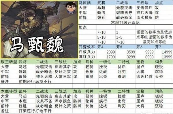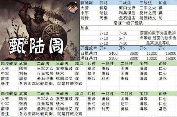 T1总共有三支队伍,马超就占了两只,剩下的一支自然就是我们的美人计-周泰,周泰自从被研发出来就稳稳占据t1宝座,不吃红,开荒稳等等优点稳固了其地位,但同时也有个致命缺点,打不了高级城和高级地