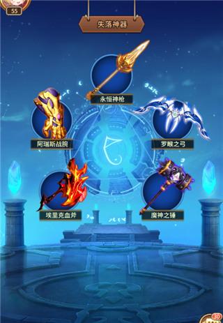 1、完成神器任务后可解锁神器,神器可为上阵英雄提供强大属性加成。
