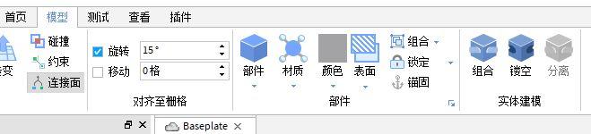 通过部件栏目中的指令,可以对部件进行外观上的颜色或者材质上的调整;同时与另一类组合、加固部件稳定。