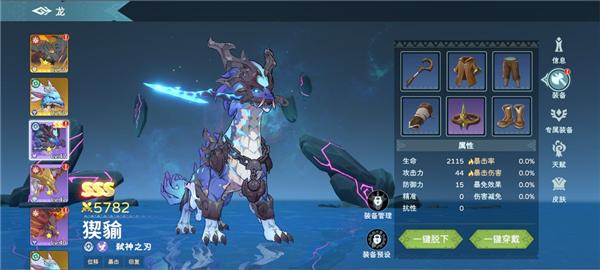 看见右下角的一键穿戴了吗?使用一键穿戴,系统自动会为当前龙穿上最佳属性装备。