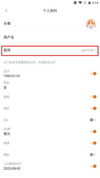 4、就可以修改自己的昵称了,记得查看修改说明。