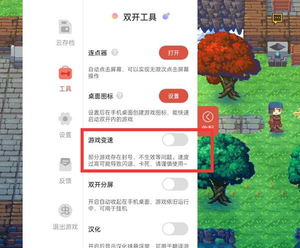 点击【悬浮窗】-【工具】-【游戏变速】,打开后可以调节游戏的速度,可以让人物走得更快,减少跑图、刷怪的时间了!