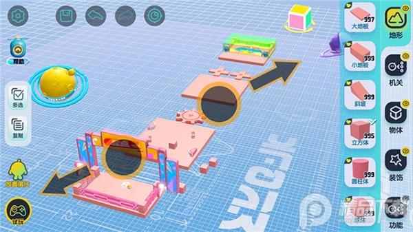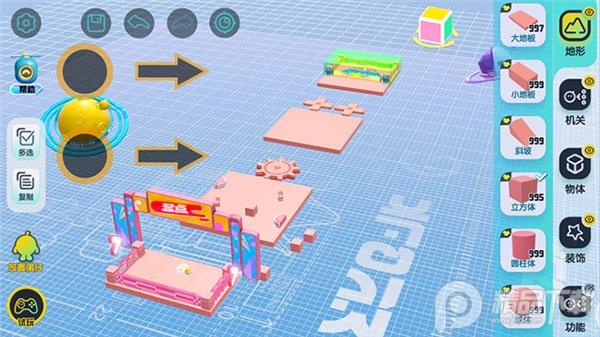 【地形组件】是构成关卡地图的基本组件,通过单指拖拽将地形组件放置在场景中,通过
