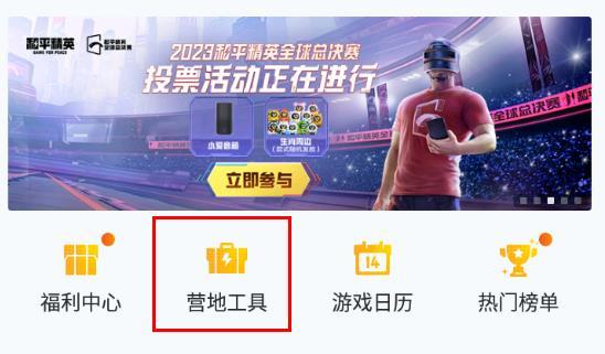 1、在和平营地中的资讯页面中,点击营地工具。