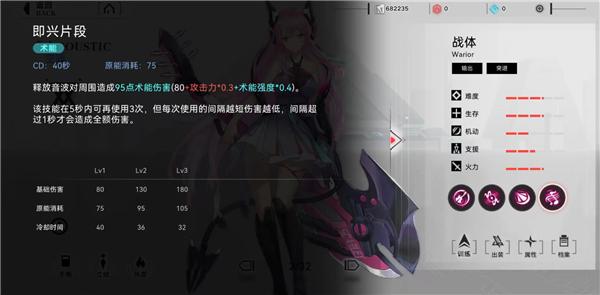 优势:游戏图标自带强度加成(bushi),被动为在一定时间后可进行一次远程普攻,一技能为远程攻击并带有破甲,配合被动可做到远程消耗;二技能两段,一段突近(无伤害,可跨越地形),二段范围击飞,释放一段后可快速点击,提前释放二段击飞;大招突进并带斩杀效果,且技能释放期间无法被选中,无论是追击还是逃跑都非常好用。