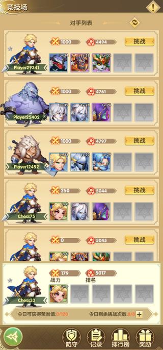 游戏内设置有竞技场系统,竞技场能获取大量荣誉值,可用于荣誉商店购买英雄。竞技场战斗中,无法进行手动操作,只能进行自动战斗,设置战斗策略有利于自动战斗。竞技场采用的赛制是换位制。