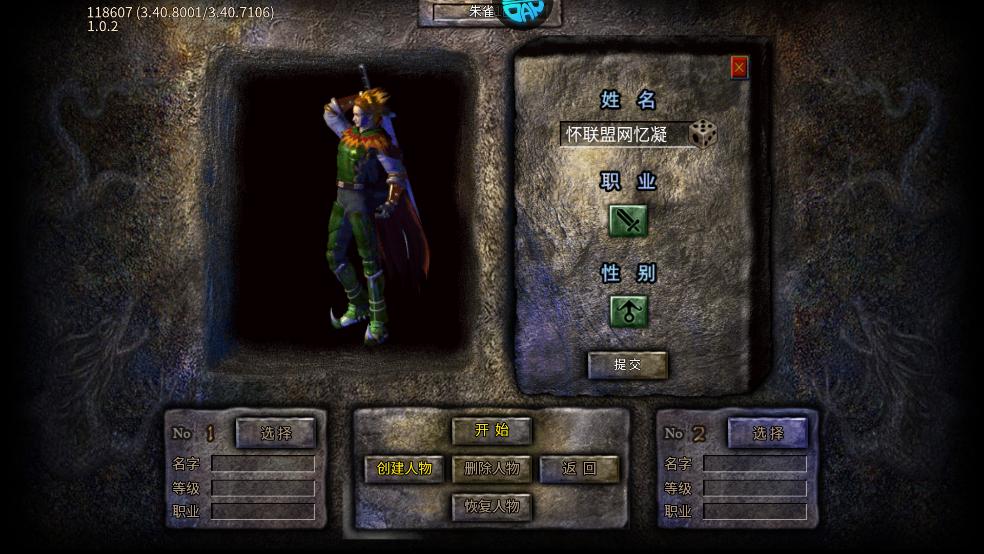 1、创建角色,玩家可以选择性别,完成创建后点击开始。