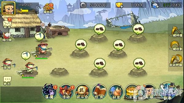 2、等到种子成长成熟之后,我们就可以收割获取相应的道具了。当然,在我们通关相应的副本之后,还会开启相当方便的一键种植和一键收割的功能呦。