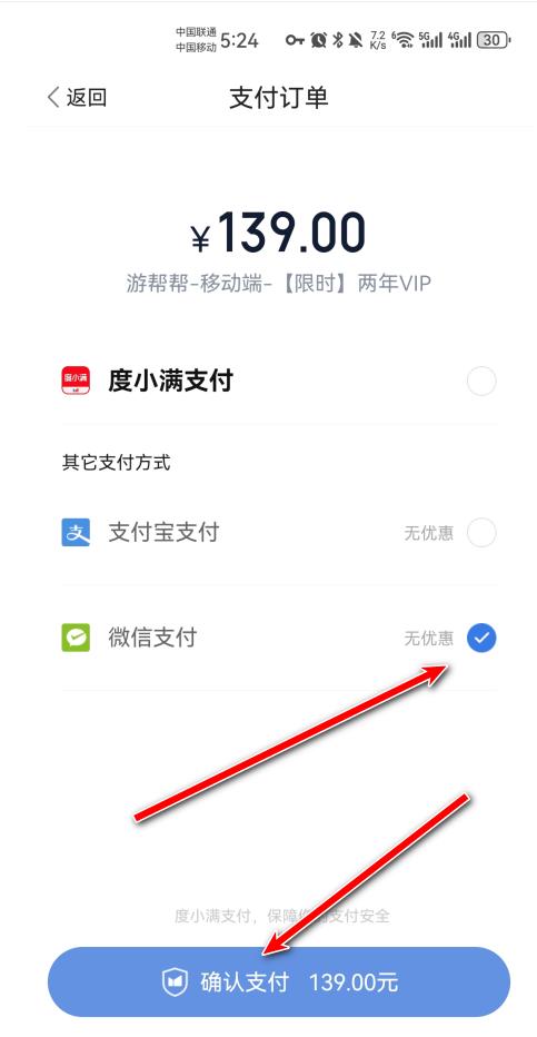 4.勾选微信支付,点击下面的确认支付然后输入支付密码即可。