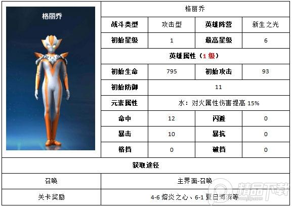 格丽乔是游戏中为数不多的女性奥特曼,我们前期的新手任务也是为了解救格丽乔,完成任务后系统也会送给我们格丽乔卡片哦。