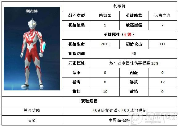 利布特——前排坦克,是“银河救援队”的一员,负责保护和拯救需要帮助的无辜受害者。胳膊和腿上附有特殊的“G水晶”。利布特奥特曼有着自己独特的战斗技巧。