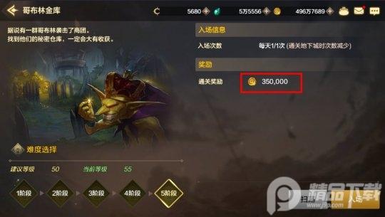 第二,50级之后可以进入哥布林金库,每个号每天可以刷35万金币。