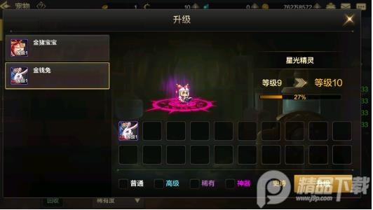 宠物有五个品质:普通、高级、稀有、神器、史诗,宠物升级的难度会随着宠物的品质变高,史诗品质的宠物升级难度最高,宠物升级的难度也会随着宠物的等级越来越高而越来越难。