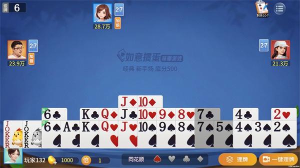 游戏核心玩法与“跑得快”与“八十分”有很大的相似性,采用了传统的掼蛋规则进行对局。玩家们分成两队,每队有两名玩家,通过出牌、反击、联手合作等策略击败对方。在原有的基础上,《如意掼蛋》加入了更多的游戏模式,使得玩法更加丰富多样。不洗牌模式是游戏中的一大亮点,这一模式下,炸弹的出现频率大幅提升,游戏的紧张程度和不确定性大大增加。玩家在这种模式下需要更加小心翼翼地判断何时使用炸弹,如何利用炸弹来逆转局势。在每一场牌局中,炸弹的存在使得每一轮出牌都充满了未知数,考验玩家的胆识和对局势的判断力。