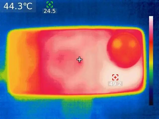 身温度正面最高40.3,背面最高38.9,都不热。表现也非常出色。镜头区域也能辅助散热,反正手摸不到。