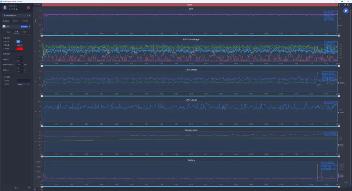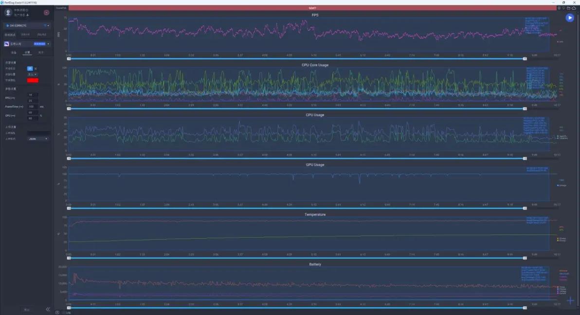 25度室温,300尼特亮度实测,性能狗perfdog记录。原神20分钟,