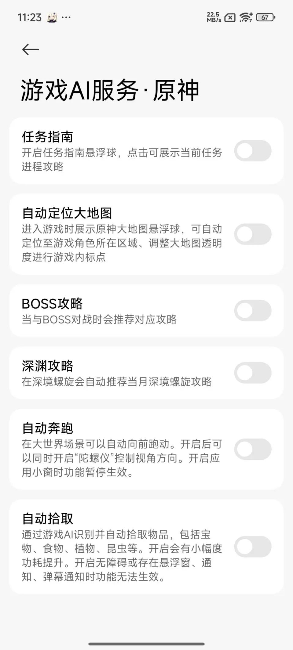 Ai游戏服务还有任务指南防迷路,BOSS提醒,自动拾取,自动走路等解放手指,不用一直按着费力了。不同游戏支持的ai功能不一样,热门游戏会多一些。